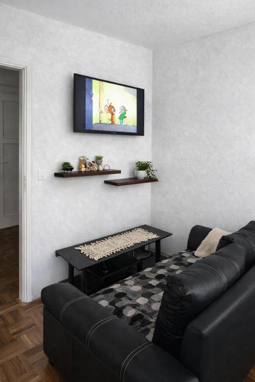 This apartment consists of 1 bedroom, a kitchen and 1 bathroom with a bidet and a hairdryer. The apartment's kitchen is available for cooking and storing food. This apartment provides heating, a flat-screen TV and a balcony. The unit offers 1 bed.