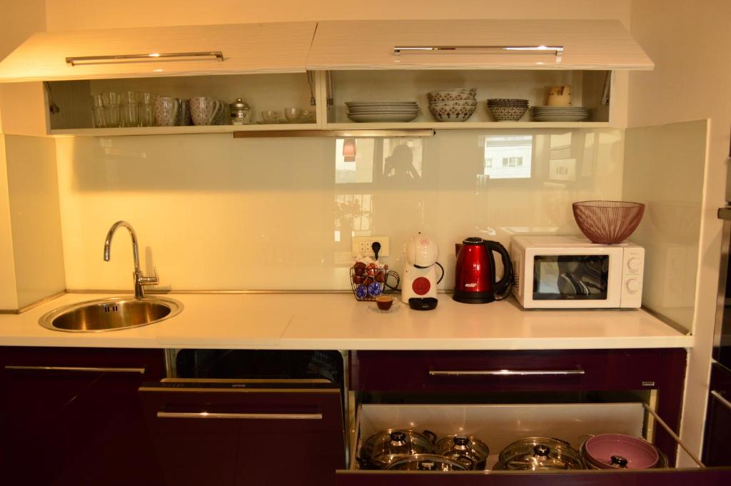 mašina za pranje veša, kuhinja, frižider, mikrotalasna rerna, mašina za pranje sudova, električno kuvalo, posuđe, toster, sredstva za čišćenje, aparat za kafu, sto za ručavanje